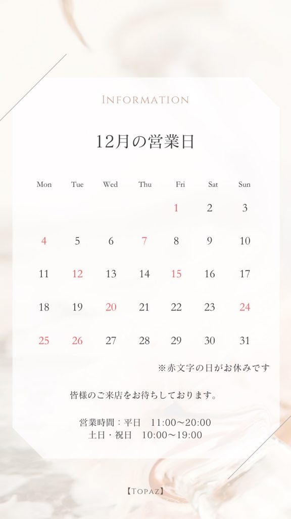 12月 営業日のご案内